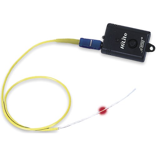 A compact and powerful visible red laser source designed to troubleshoot faults on fiber optic cables. Light generated by the HiLite will escape from sharp bends and breaks in jacketed or bare fibers, as well as poorly mated connectors which allows identification of faults in fiber optic jumper cables, distribution frames, patch panels, and splice trays. Other applications include locating faults in OTDR dead zones, end-to-end continuity checks, identifying connectors in patch panels, and identifying fibers during splicing operations. The universal connector interface provides fast operation with many connector styles without changing an adapter.