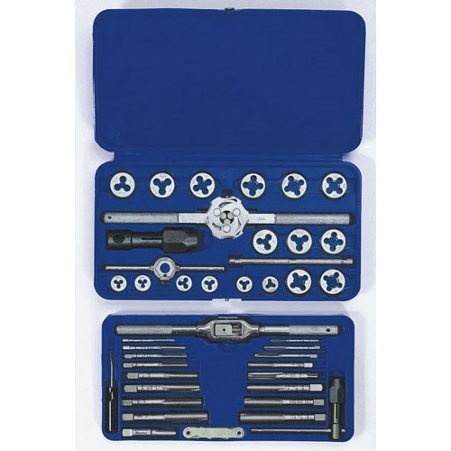 | Includes: | (3) Machine Screw Taps: 6-32 NC, 8-32 NC,10-24 NC, (6) Fractional Taps: 1/4"-20 NC, 5/16"-18 NC, 3/8"-16 NC, 7/16"-14 NC, 1/2"-13 NC, 1/8"-27 NPT, (8) Metric Taps: 4 mm - 0.75, 5mm-0.80, 6mm-1.00, 7mm-1.00, 8mm-1.25, 10mm-1.25, 10mm-1.50, 12mm-1.75, (3) M |