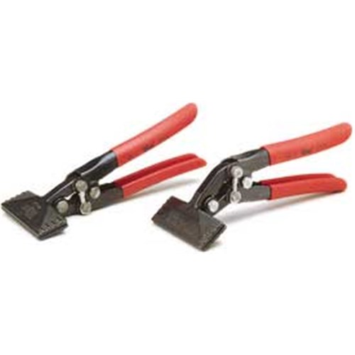 Produces a permanent tight-fitting seam. Markings on jaw are 1/4'' incremental depths. Black matte finish, rust-resistant blades and cushion handle. Jaw depth is 1/4 - 1-1/4''. Length is 8-3/4''. Image shows both the straight (shown at left) and offset models. The offset model was discontinued by Wiss.